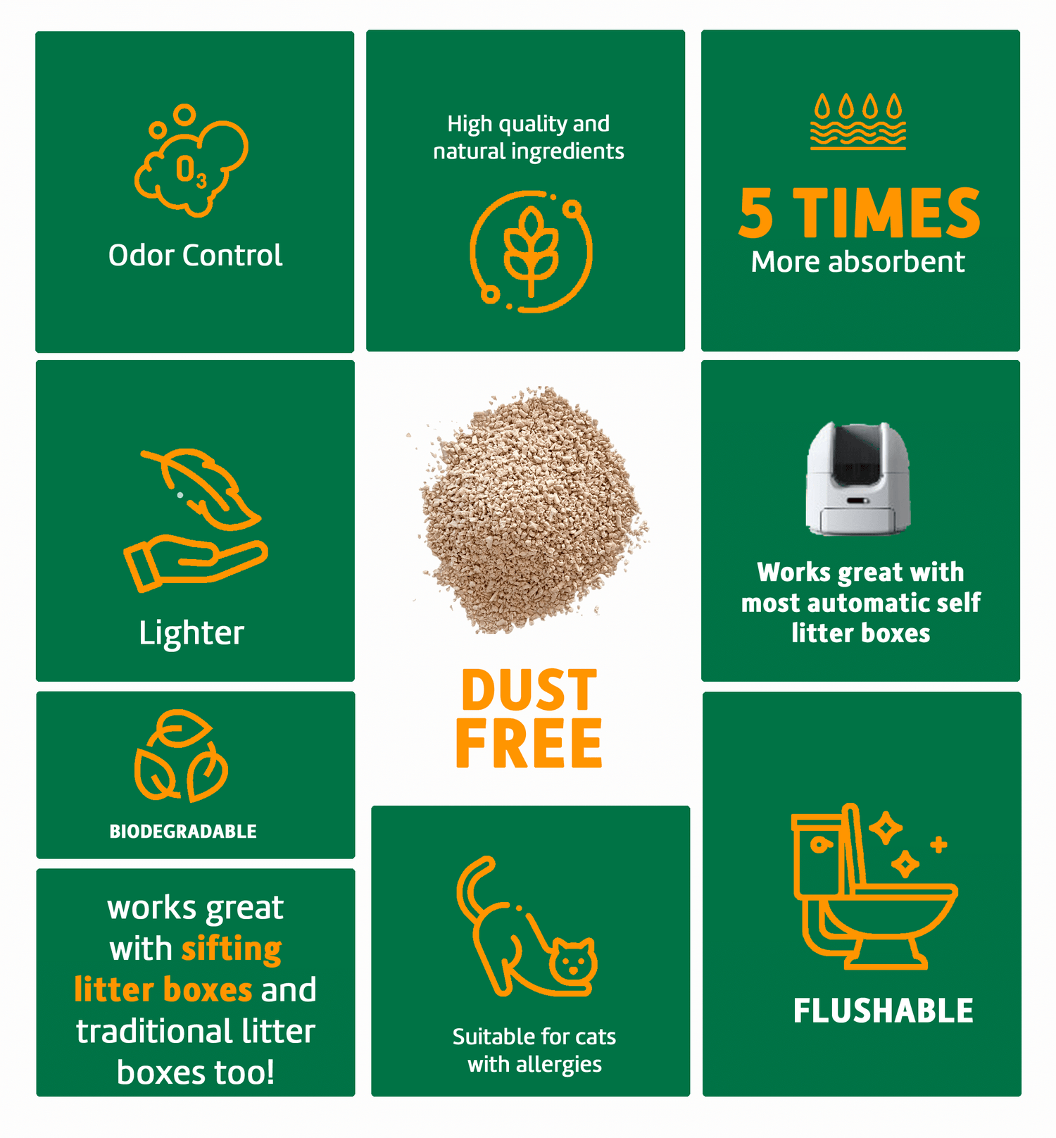 The shape and size are similar to clay litter, so you can use it in self-cleaning litter boxes